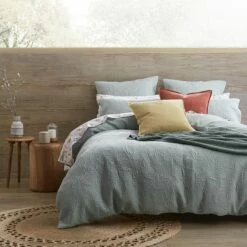 Create a coastal oasis in your bedroom with the Palm Leaf quilt cover. A restful palm leaf design is featured in soft sage tones and finished with a printed reverse.