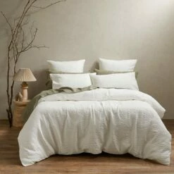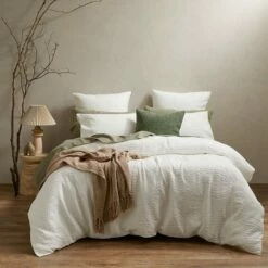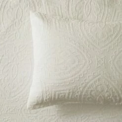 The quilt cover has been crafted using a matelassé technique, creating a pattern that is tactile and detailed.