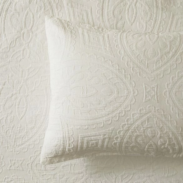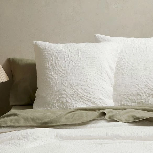Add textural depth to your bedroom with the Bentley quilt cover. Designed in our Melbourne studio, this cotton matelassé design features repeating scalloped motifs in a medallion-inspired pattern. Coordinate with European pillowcases to complete the look.
