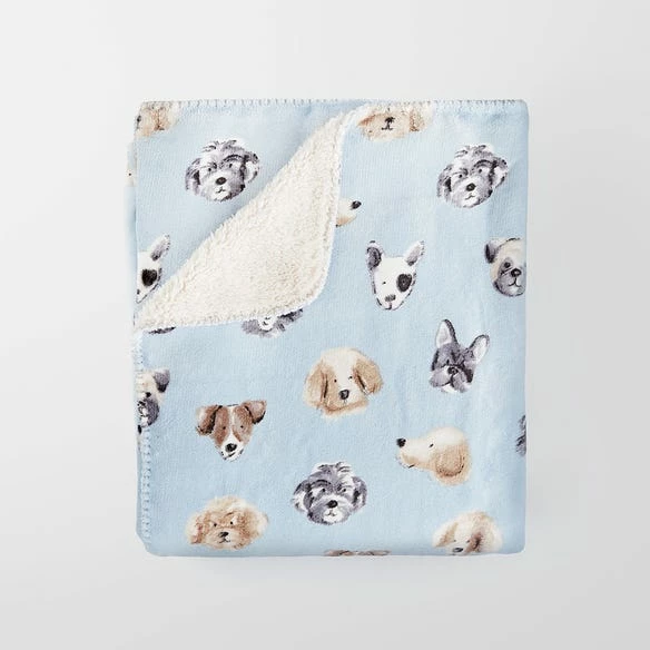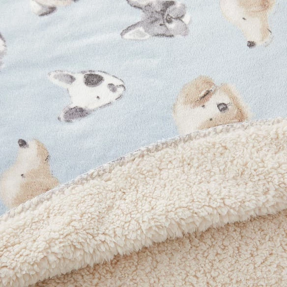 Snuggly and soft, the Buddy Sherpa Throw is the perfect choice for the cooler months. Printed on plush polyester with a sherpa reverse, this throw blanket features a mix of adorable dog breeds hand-painted over a sky blue base.