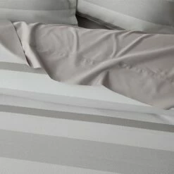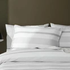 A classic stripe design, the Colter quilt cover will make a stylish addition to any bedroom.Combining a with a contemporary palette of silver and grey, the Colter quilt cover is finished with a tailored edge for an added touch of sophistication and style.Coordinate with the European pillowcases with button feature and matching cushion to complete the look.