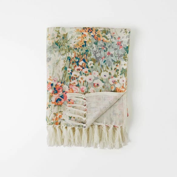 Bring colour and pattern into your living space with the Conchita Throw. Crafted from linen with tassel edges, this throw features an exclusive printed design in soft shades of blush and green.