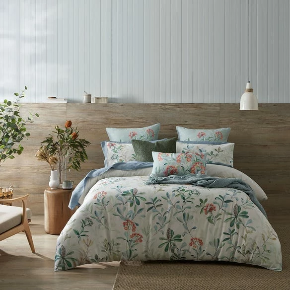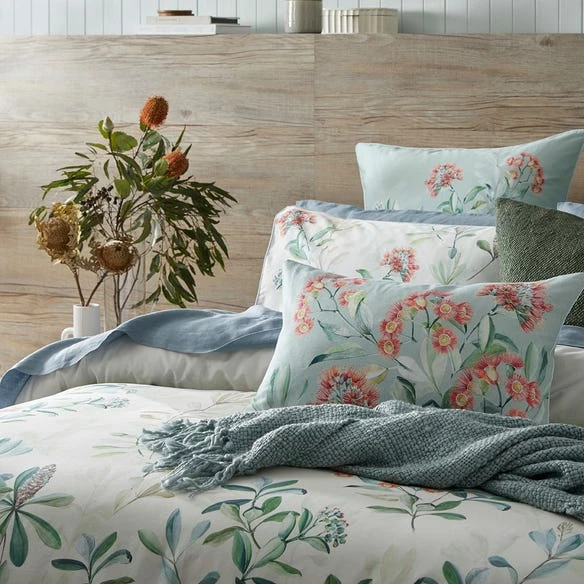 Native Australian foliage dance playfully across the surface of this quilt cover. Paired with its calming colour palette, the Currawong cover brings a freshness and energy to any bedroom.