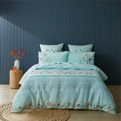 Featuring a charming floral embroidered panel, detailed pintuck panels and a filled piping border, Garcia is an elegant quilt cover packed with detail.