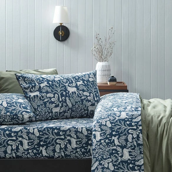 Create a whimsical style in your bedroom with the Kingswood flannelette sheet set. Hand drawn woodland creatures are designed amongst forest scenes for a playful style. Finished with a twin needle stitch, the high quality flannelette has been brushed on both sides to keep you snug and cosy throughout winter.