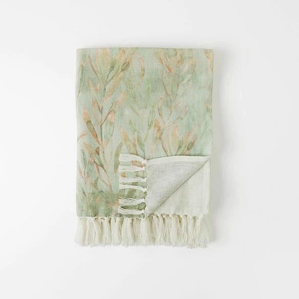 Bring a natural feel to your living space with the Lucca Throw. Crafted from linen with tassel edges, this throw features a soft printed design in a calming sage colour palette.