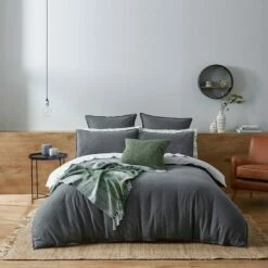 Bring a casual elegance to your bedroom with the Lusso Charcoal/Cool Grey luxury brushed cotton blend quilt cover.