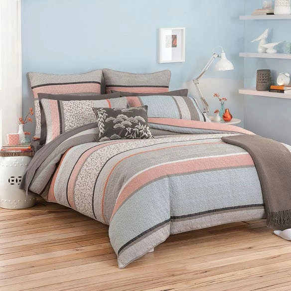 The Makoto quilt cover combines traditional Japanese prints with organic patterns and stripes to form a calm and restful design.