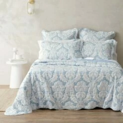Introduce a classic style to your bedroom with the Portela bedspread. Featuring a pale blue and white traditional pattern with scallop edge detail, this bedspread is finished with a plain dye reverse. Use the bedspread as a lightweight layer in summer or pair with a quilt in winter to transition easily between seasons.