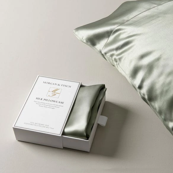 Widely renowned as the highest quality silk, Morgan & Finch White Label use 16 momme Mulberry silk. Sleeping on a sage mulberry silk pillowcase has a wide range of natural benefits for your skin and hair.