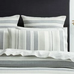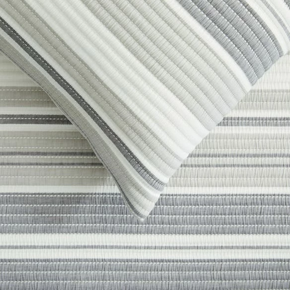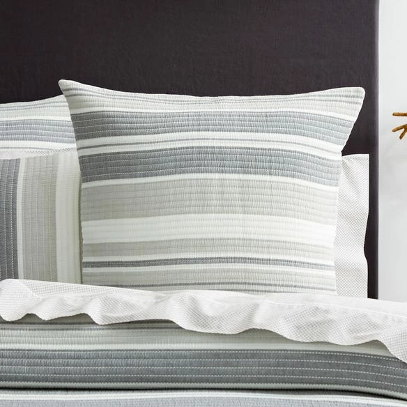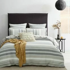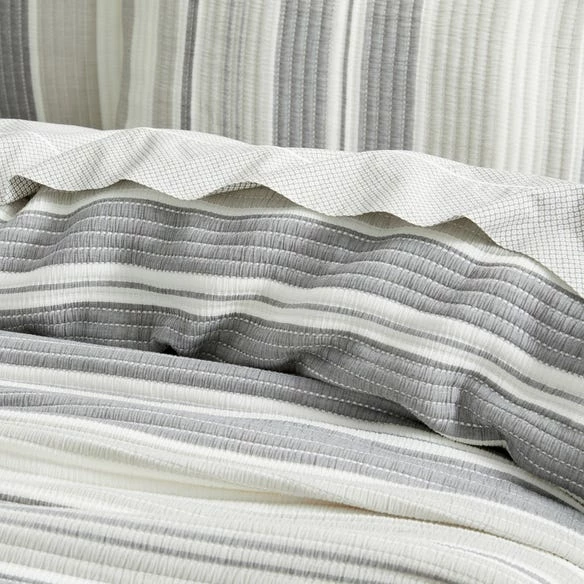 Introduce sophisticated, contemporary style with the Somers quilt cover. Featuring textured horizontal stripes and stitched detailing in a stylish charcoal and grey colour palette. Coordinate with European pillowcases for a complete look.