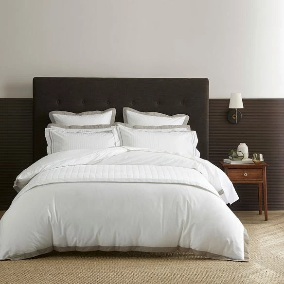 Invest in timeless luxury at home with the Sussex quilt cover. Woven from beautifully soft 400 thread count Egyptian cotton sateen, this quilt cover has been finished with a contrasting silver tailored trim for a sophisticated style.