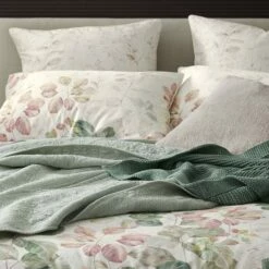 Designed and styled in Australia, contemporary Cotton House designs are perfectly suited to the relaxed Australian way of life. Create an elegant style in your bedroom with the Smokebush quilt cover. Made from luxurious cotton sateen, Smokebush stems are hand-painted in soft watercolour shades of green, red, and purple.
