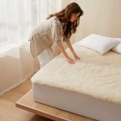 The Cotton House Wool Underblanket will help you sleep comfortably all year round; providing insulation to keep your warm in winter and cool in summer. Fully reversible, the underblanket is constructed using a silver knit tufted woollen pile on one side, and a cotton percale casing on the reverse. The inner padding of the underblanket is filled with natural wool, which has been teased and shaped into a soft filling, making it supremely comfortable to sleep on. The natural properties of wool make it a superior insulator, which keeps you warm when it’s cold and cool when it’s hot. On the woollen side, the softness of the silver knit tufted pile allows air to circulate between your body and the mattress while reducing pressure points by distributing your body weight evenly, resulting in a comfortable and restful sleep during winter. On the cotton reverse, the wool’s natural breathability is enhanced by the cool, cotton percale casing, leaving you comfortable and refreshed during summer without compromising on the soft padding provided by the woollen inner. The fully fitted, elasticised skirt holds the underblanket securely onto the mattress.